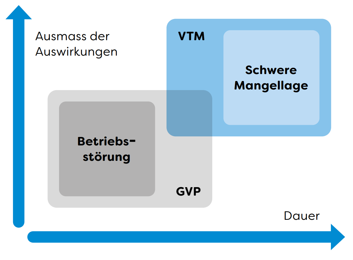Die VTM fokussiert auf schwere Trinkwassermangellagen, setzt aber bei der Resilienz der Versorgungssysteme an; u.a. bei der guten Verfahrenspraxis (GVP), damit kurzzeitige Betriebsstörungen (möglichst) rasch behoben werden können und schwere Mangellagen (möglichst) gar nicht erst entstehen. So verpflichtet beispielsweise der Artikel 4 der VTM die Kantone zu einer Reihe von Vorbereitungsmassnahmen. Der Artikel 6 der VTM verlangt, dass die Wasserversorgungen die erforderlichen Massnahmen zur Vermeidung schwerer Mangellagen treffen sowie in organisatorischer und technischer Hinsicht innerhalb bezeichneter Versorgungsgebiete zusammenarbeiten. Daraus lassen sich wertvolle Synergien zu bewährten kantonalen Planungsinstrumenten wie den Generellen und Regionalen Wasserversorgungsplanungen (GWP und RWP) ableiten.