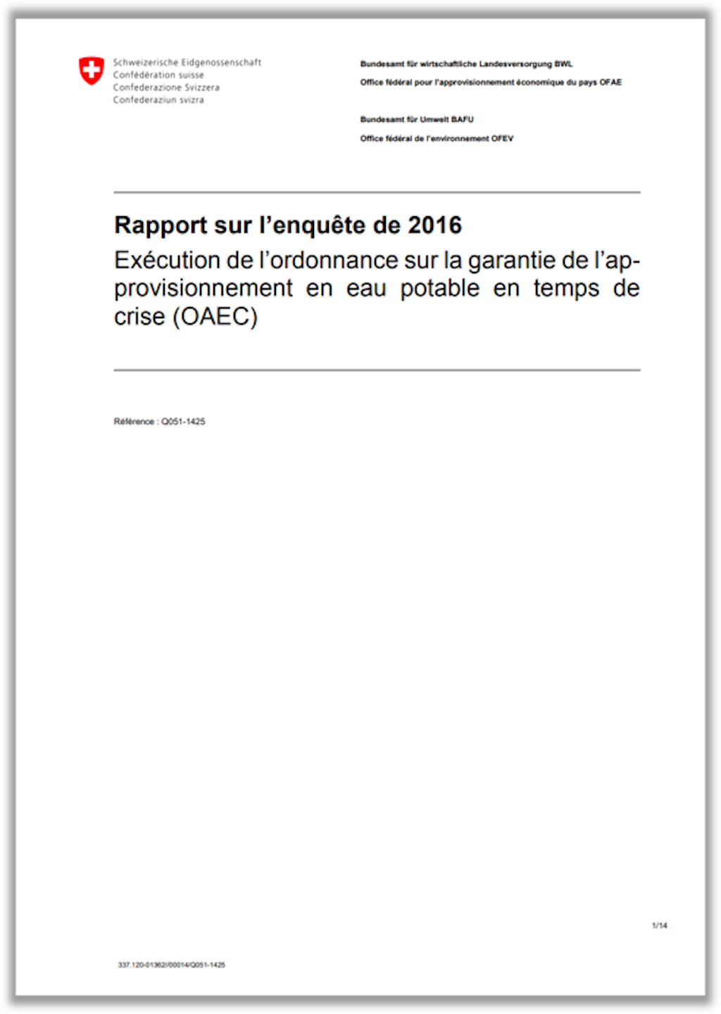 1Cette analyse, prévue à l’art. 3, al. 3, de l’ordonnance du DFI sur l’eau potable et l’eau des installations de baignade et de douche accessibles au public (OPBD), se fonde sur les analyses des risques et dangers réalisées par l’OFPP et les cantons.