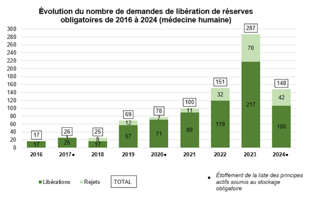 Les perturbations de l’approvisionnement notifiées sont analysées et suivies par le bureau de notification pour les médicaments vitaux à usage humain. Des réserves obligatoires ont été libérées lorsque la nécessité s’en est fait sentir afin de pallier les pénuries et d’assurer l’approvisionnement du marché. Pour de plus amples informations sur la situation de l’approvisionnement en produits thérapeutiques vitaux, veuillez consulter l’analyse de la situation de l’AEP, qui fait l’objet d’une mise à jour régulière. Les chiffres exacts relatifs aux perturbations de l’approvisionnement et aux libérations de réserves obligatoires en 2025 seront communiqués dans la prochaine newsletter de l’AEP, en mai 2026.