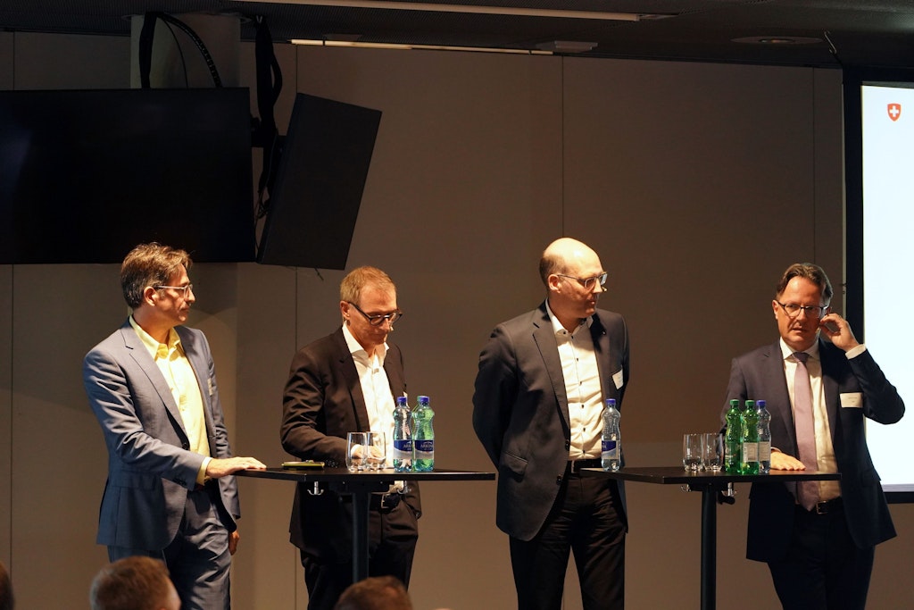 Après la pause, Daniel Möckli, directeur du think tank « Center for Security Studies » de l’ETH Zurich, a évoqué la situation internationale et mis en lumière les évolutions géopolitiques actuelles et leurs conséquences potentielles sur la sécurité de l’approvisionnement de la Suisse. Sa présentation s’est close sur un échange au sujet des chaînes logistiques avec Andreas Jeppesen, responsable du domaine Logistique, Rolf Galliker, patron et directeur des opérations d’une entreprise de transports et de logistique, et Conradin Bolliger, directeur de réservesuisse. La table ronde, animée par Miriam Spychiger, chargée de communication à l’Office fédéral du service civil, et les questions du public ont mis clairement en évidence les interdépendances et interactions reliant tous les secteurs couverts par l’AEP. Une coopération étroite et innovante entre l’État et le secteur privé est nécessaire pour assurer un approvisionnement sûr de la Suisse en biens et services vitaux.
