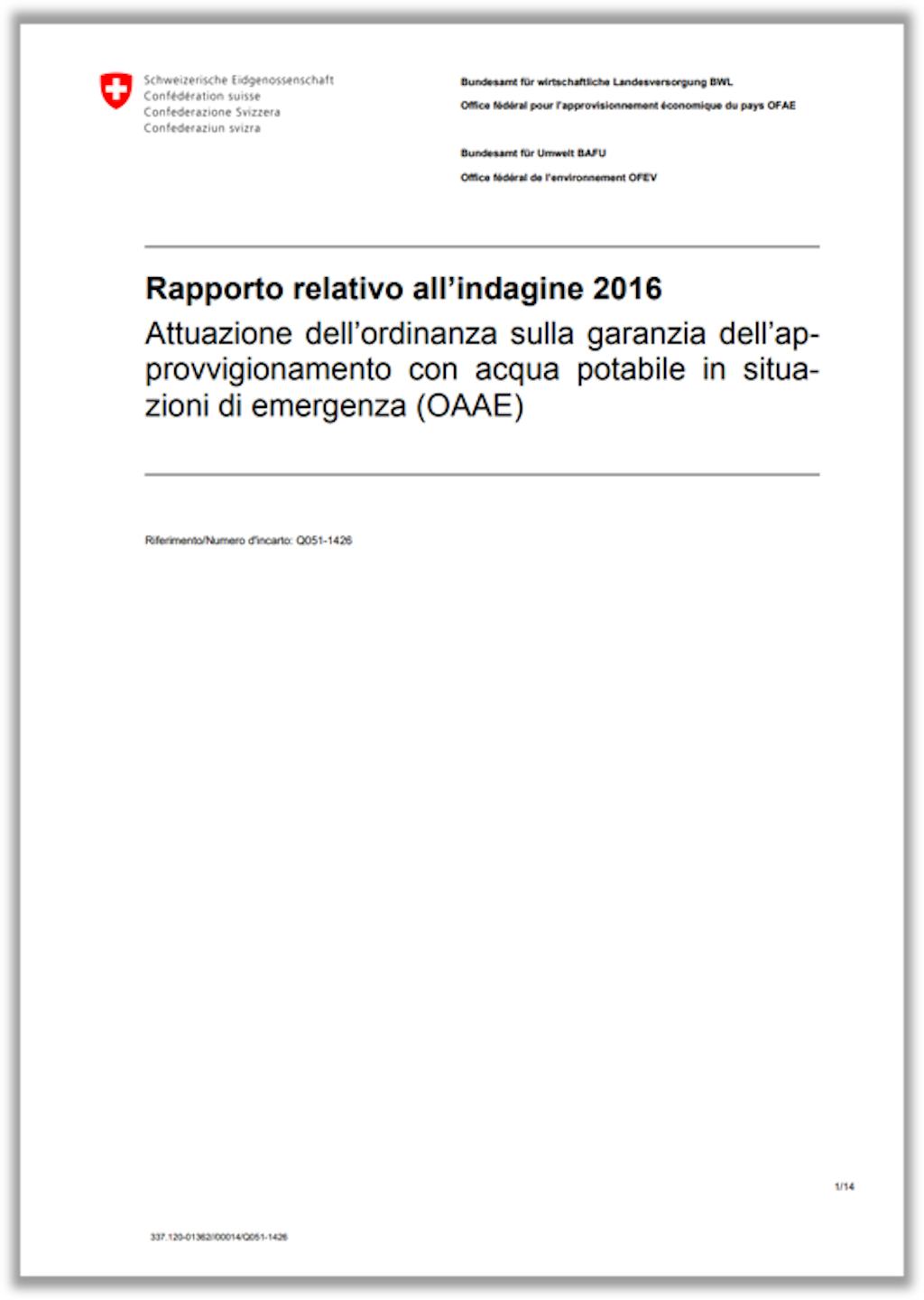 L’ordinanza sulla garanzia dell’approvvigionamento di acqua potabile in situazioni di grave penuria (OAAP [RS 531.32]), entrata in vigore nel 1991, ha definito i compiti dei Cantoni e dei servizi di approvvigionamento idrico, in modo da assicurare l’approvvigionamento di acqua potabile alla popolazione in quantità tali da garantire la sopravvivenza anche in situazioni di emergenza (p. es. guerre o catastrofi naturali).